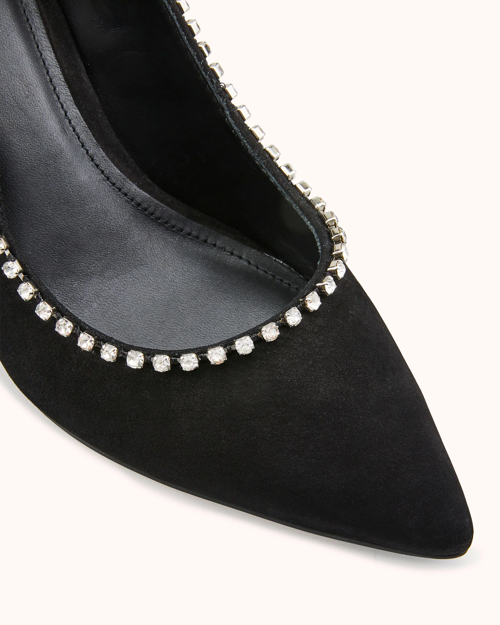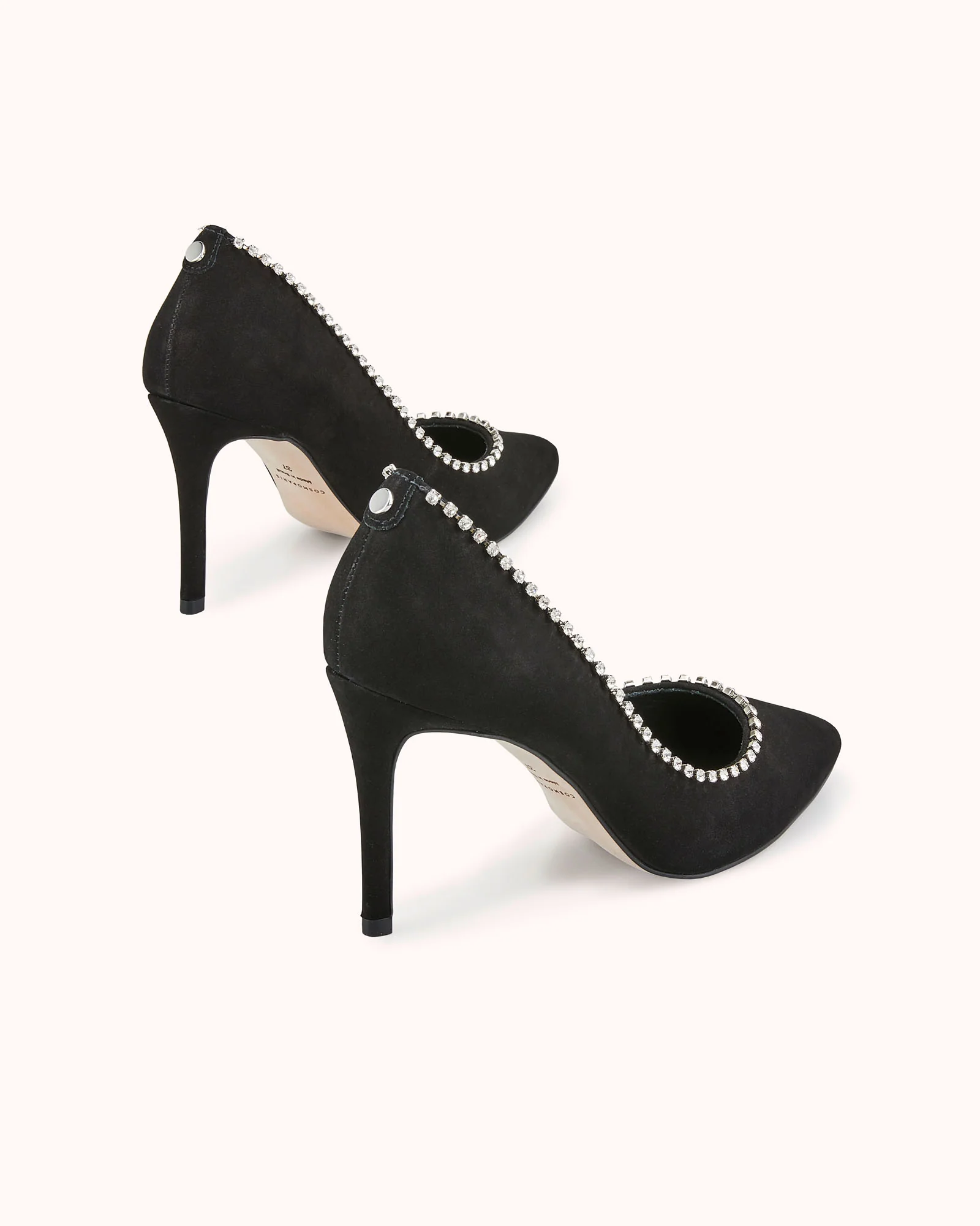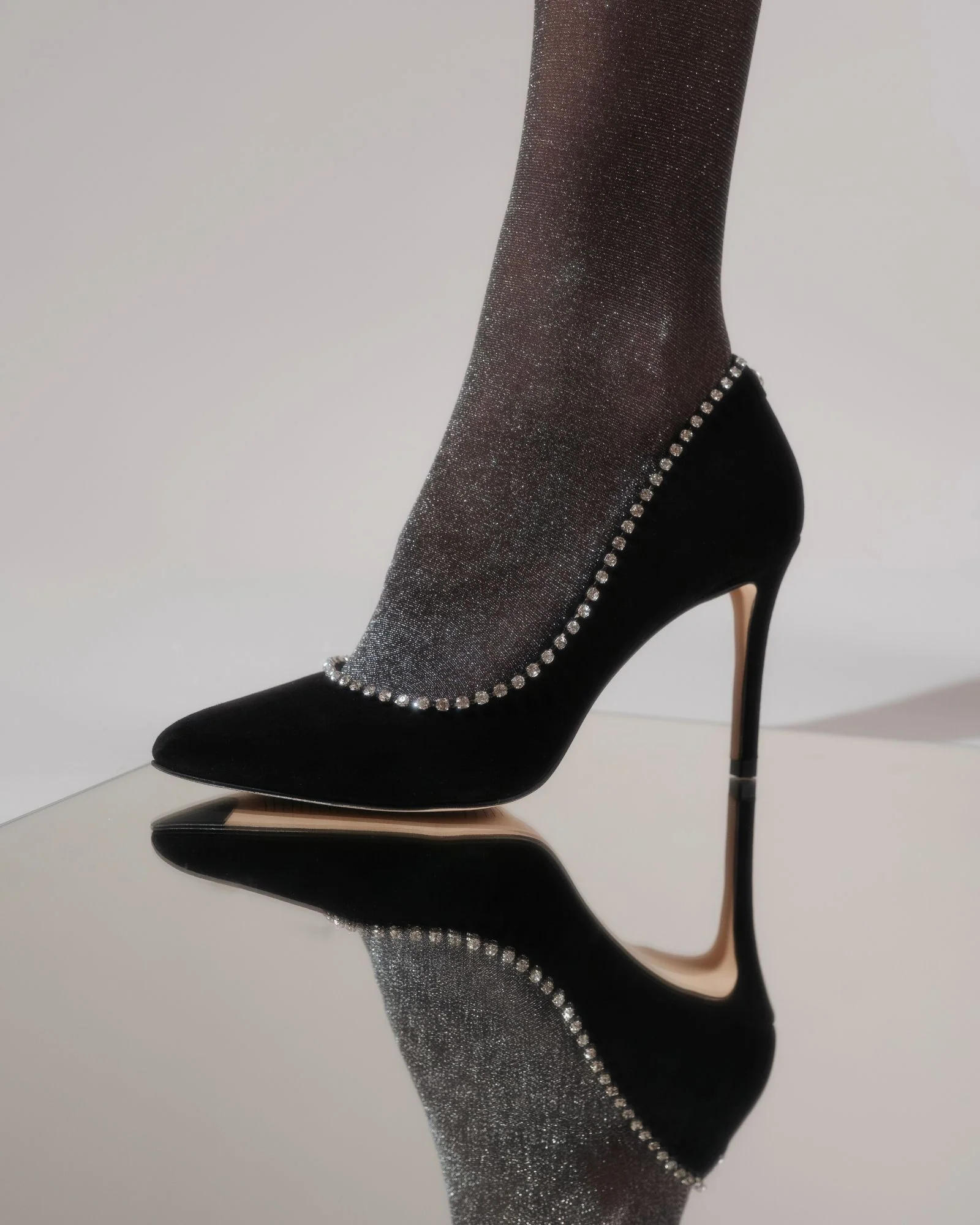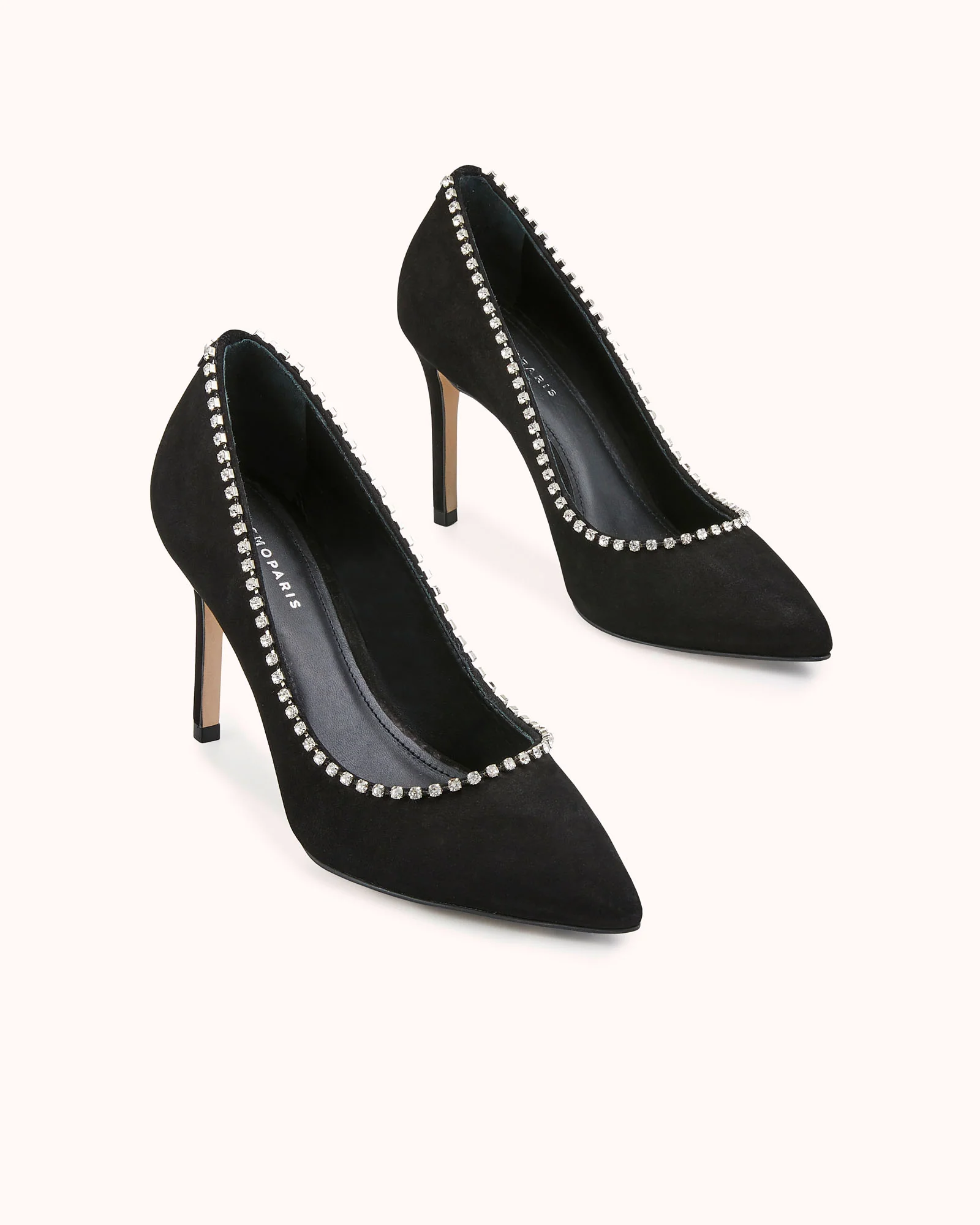 L’escarpin AMAZE est l’escarpin phare de notre collection. Son décolleté est habillé de nombreux strass cousus un à un à la main dans notre atelier brésilien. Ses 9 cm de talon en feront le partenaire idéal de vos soirées. Ce modèle est fabriqué avec du cuir issu de tanneries certifiées Leather Working Group au niveau « gold ».