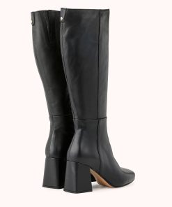 Notre modèle LAURYNE est une botte à talon carré de 8 cm en cuir lisse noir ultra souple. Sa tige viendra galber vos jambes pour un style résolument féminin et élégant.