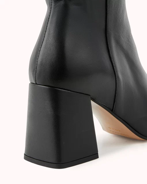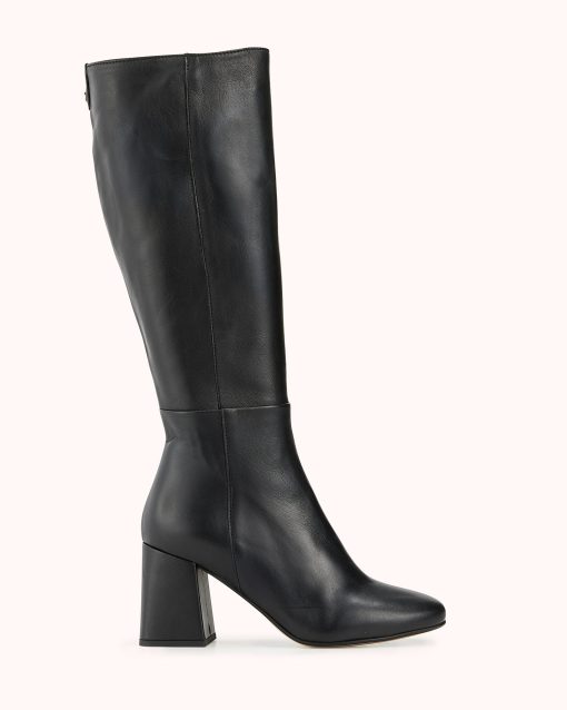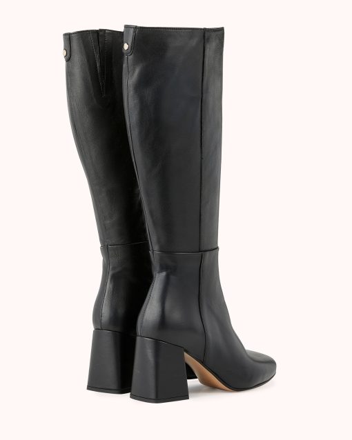 Notre modèle LAURYNE est une botte à talon carré de 8 cm en cuir lisse noir ultra souple. Sa tige viendra galber vos jambes pour un style résolument féminin et élégant.