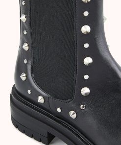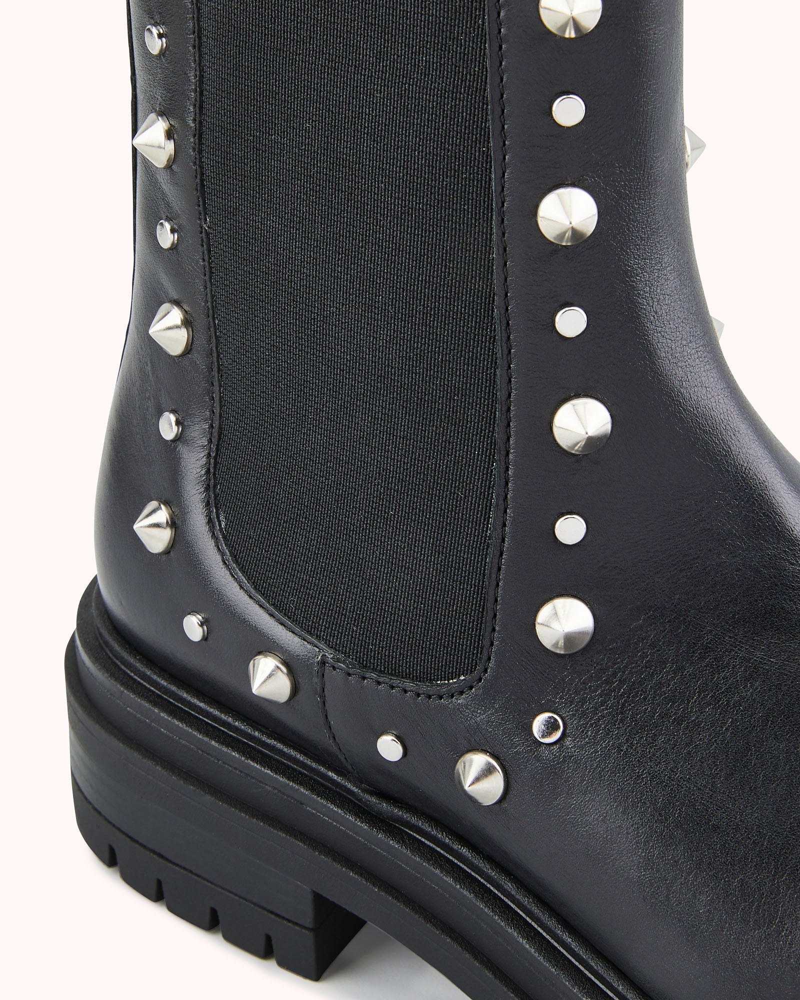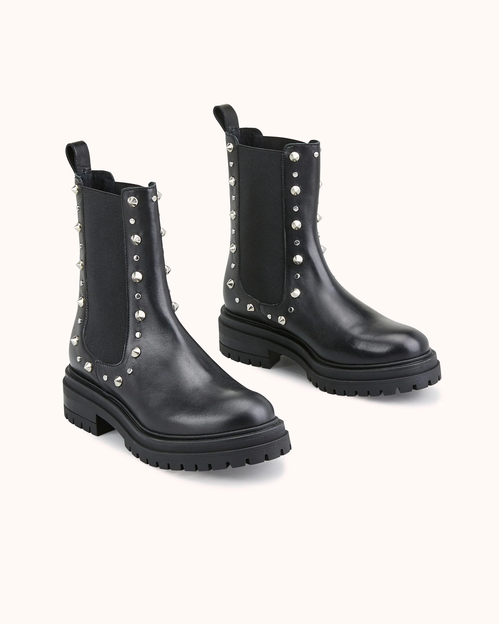 Craquez pour la bottine VERENE: notre nouvelle bottine chelsea à semelle crantée. Habillée de studs pyramides et ronds argents, elle est le partenaire rock et féminin de votre quotidien. Ce modèle est fabriqué avec du cuir issu de tanneries certifiées Leather Working Group au niveau « gold ».