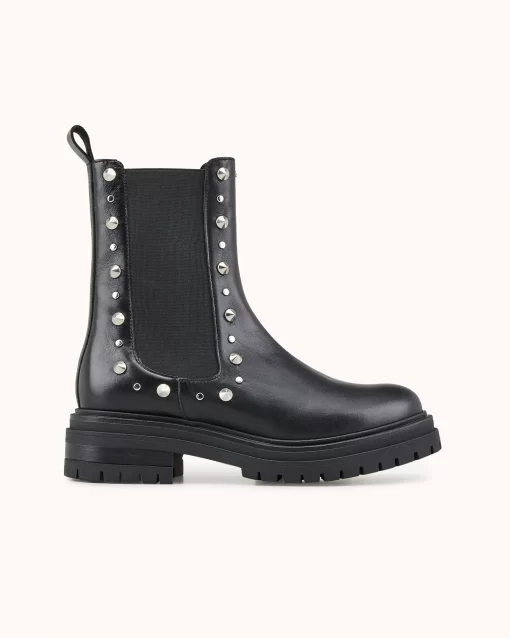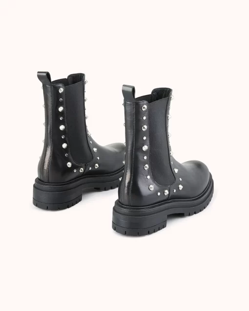 Craquez pour la bottine VERENE: notre nouvelle bottine chelsea à semelle crantée. Habillée de studs pyramides et ronds argents, elle est le partenaire rock et féminin de votre quotidien. Ce modèle est fabriqué avec du cuir issu de tanneries certifiées Leather Working Group au niveau « gold ».