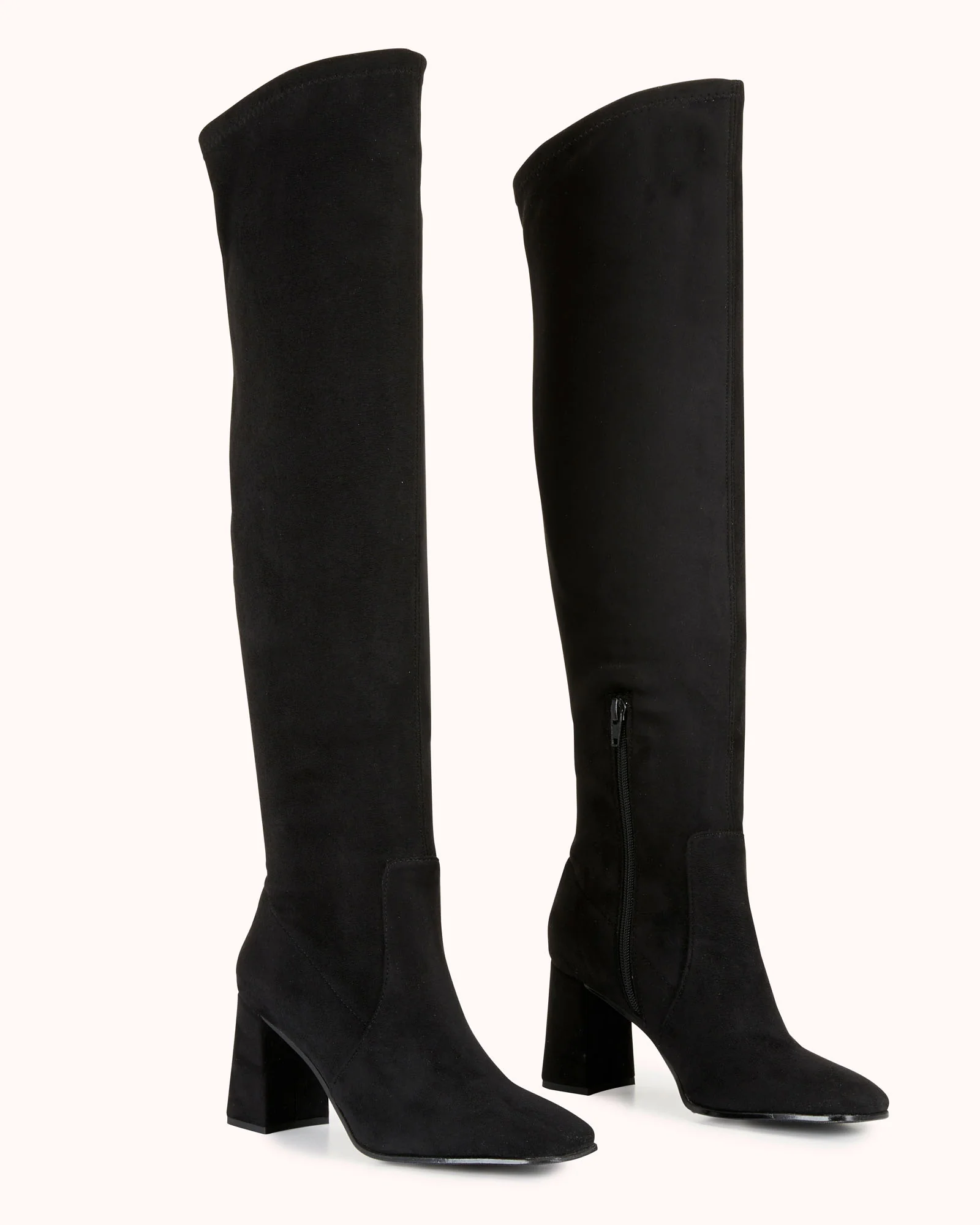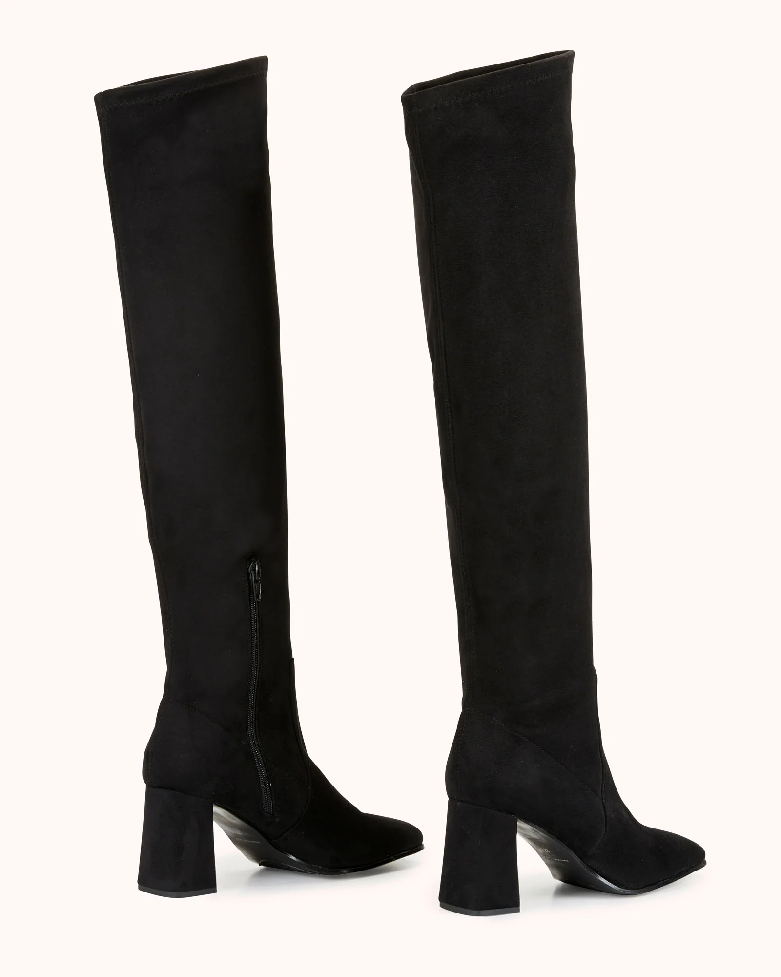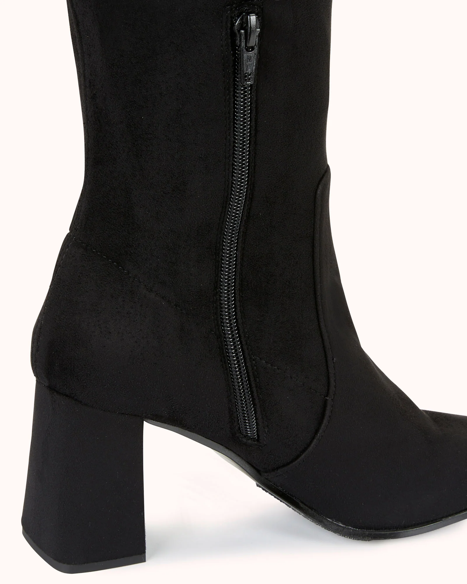 La DELPHINE est une botte genoullière stretch à talon de 8 cm. En velours stretch, elle galbe de manière très élégante la jambe et convient parfaitement à tous types de mollets.
