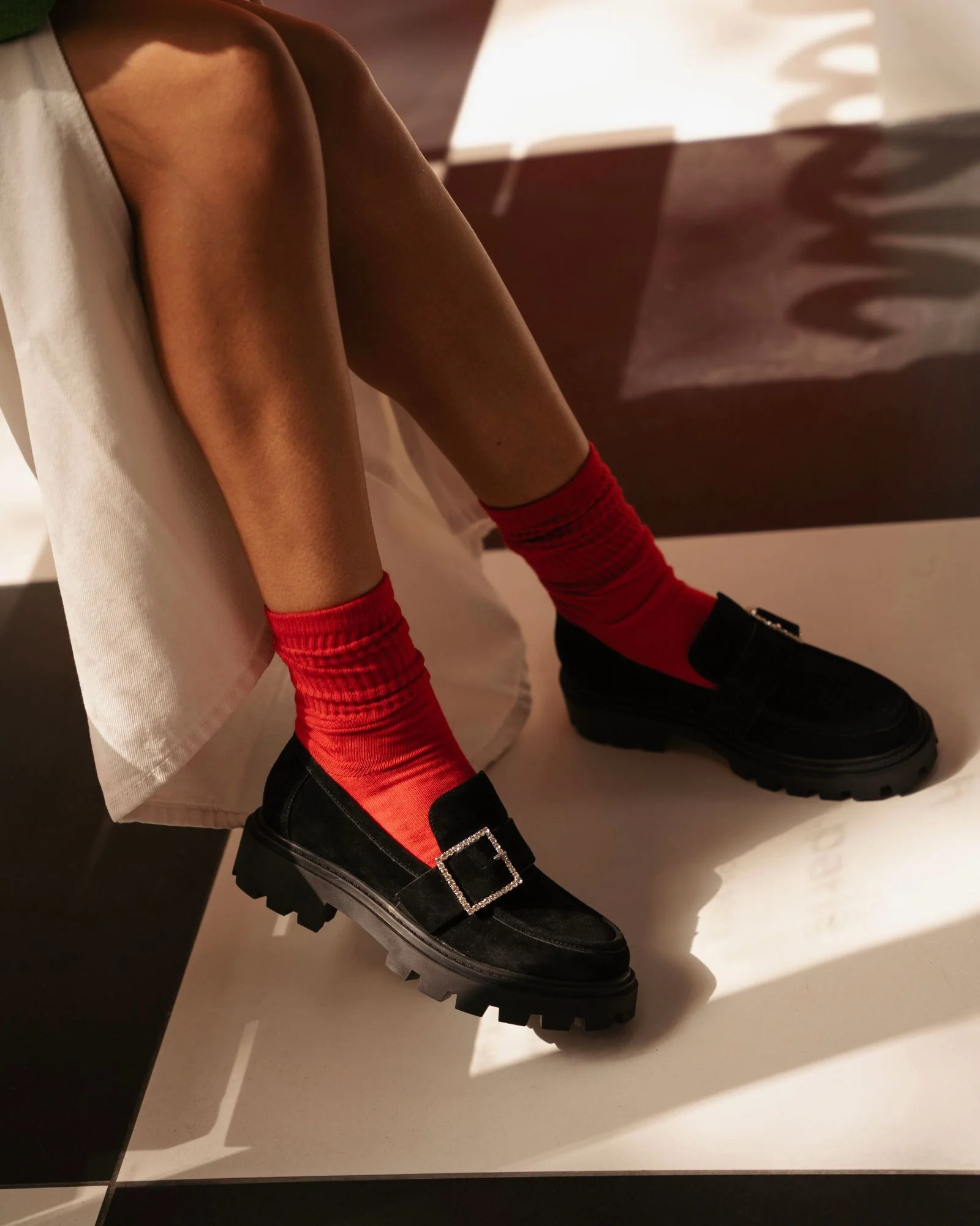 Le mocassin HABY est la nouveauté à ne pas rater. Sa semelle crantée, son détail de boucle à strass apporteront une touche rock, féminine et très tendance à vos tenues. Ce modèle est fabriqué avec du cuir issu de tanneries certifiées Leather Working Group au niveau « gold ».