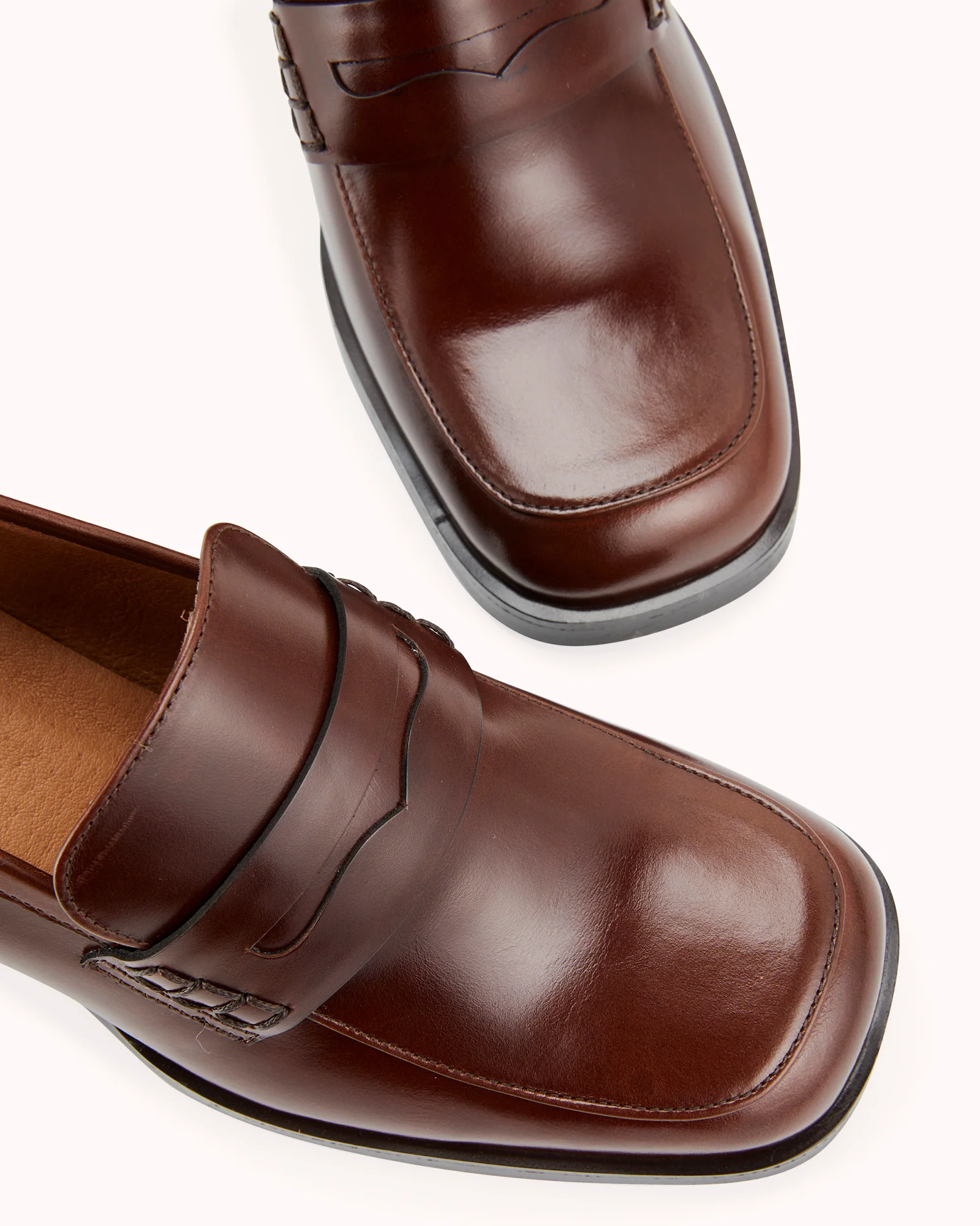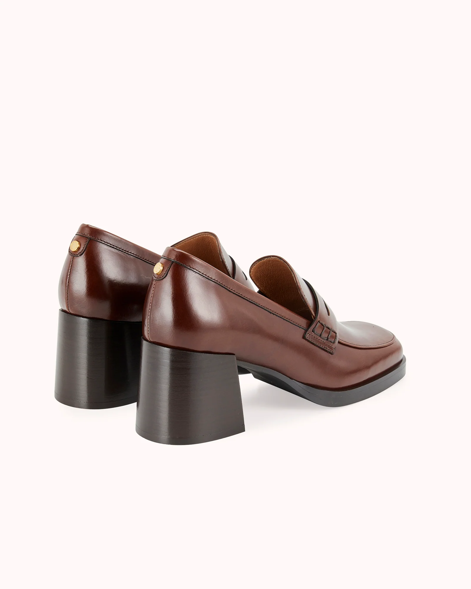Notre modèle PILAR est un mocassin à talon en cuir lisse marron. Avec son talon de 6 cm et son bout carré, elle est la paire classique chic à avoir dans votre dressing. Intemporelle et confortable, elle sera votre indispensable cet automne.