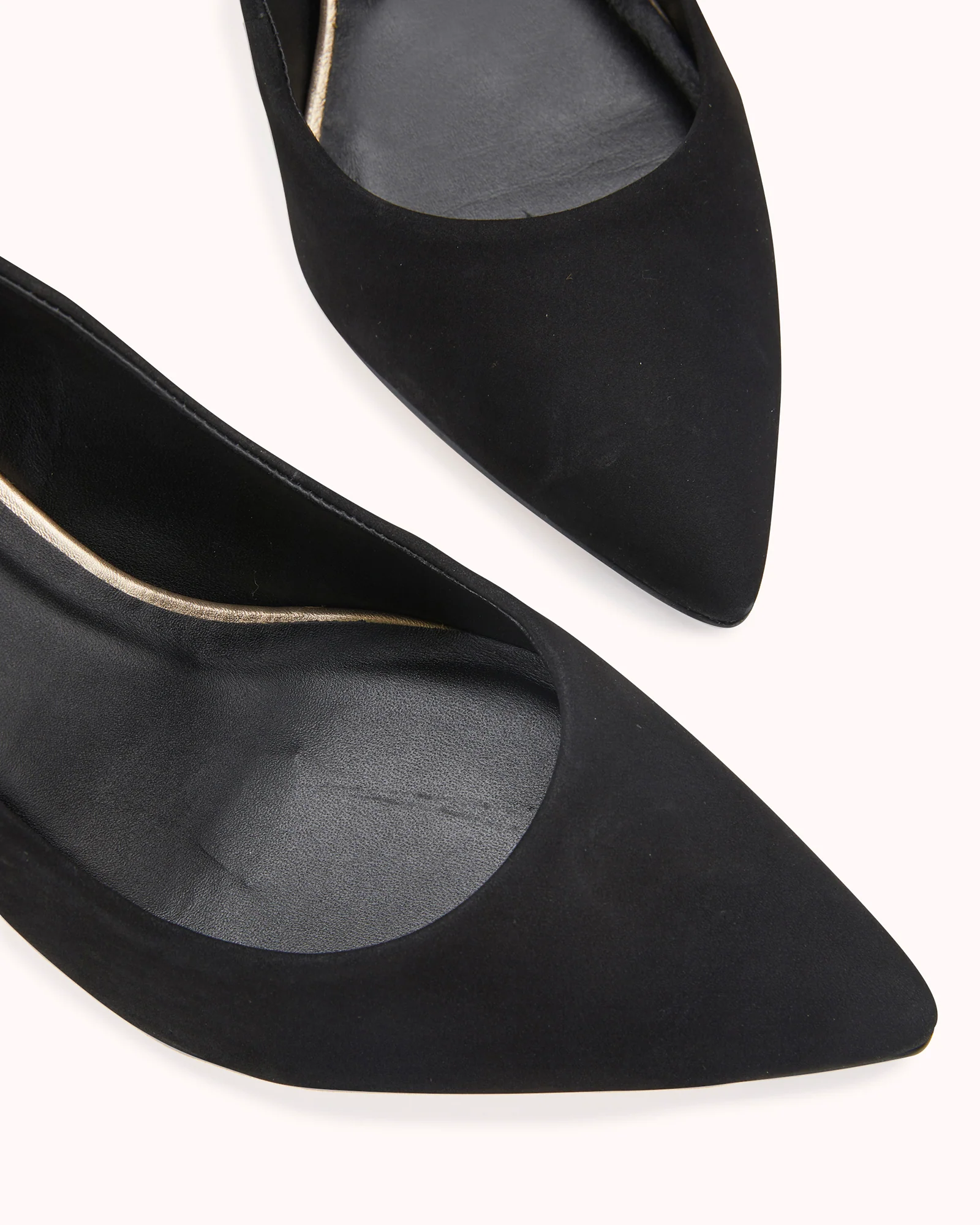 L’escarpin OPALA revisite notre iconique AZOA avec un nouveau talon « bobine » très tendance et féminin de 9 cm! En cuir nubuck noir, il sera votre nouvel indispensable pour toutes les occasions.
