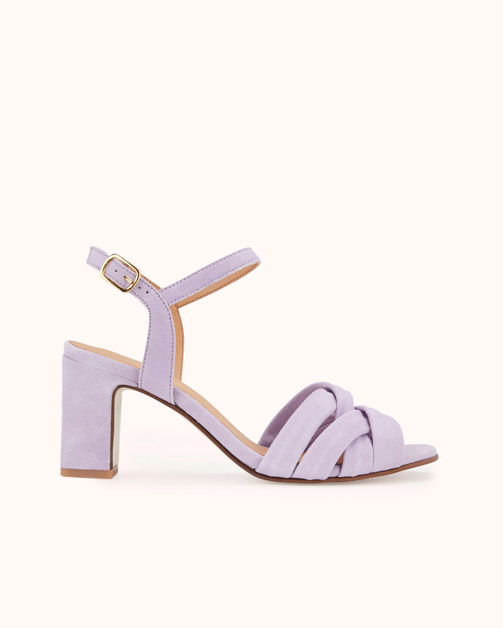 Notre sandale VILO est la petite soeur de notre iconique VIZZO. Elle se distingue par son nouveau talon à gorge ultra féminin et confortable. Elle se pare de chèvre velours Lilas: couleur tendance de la saison.