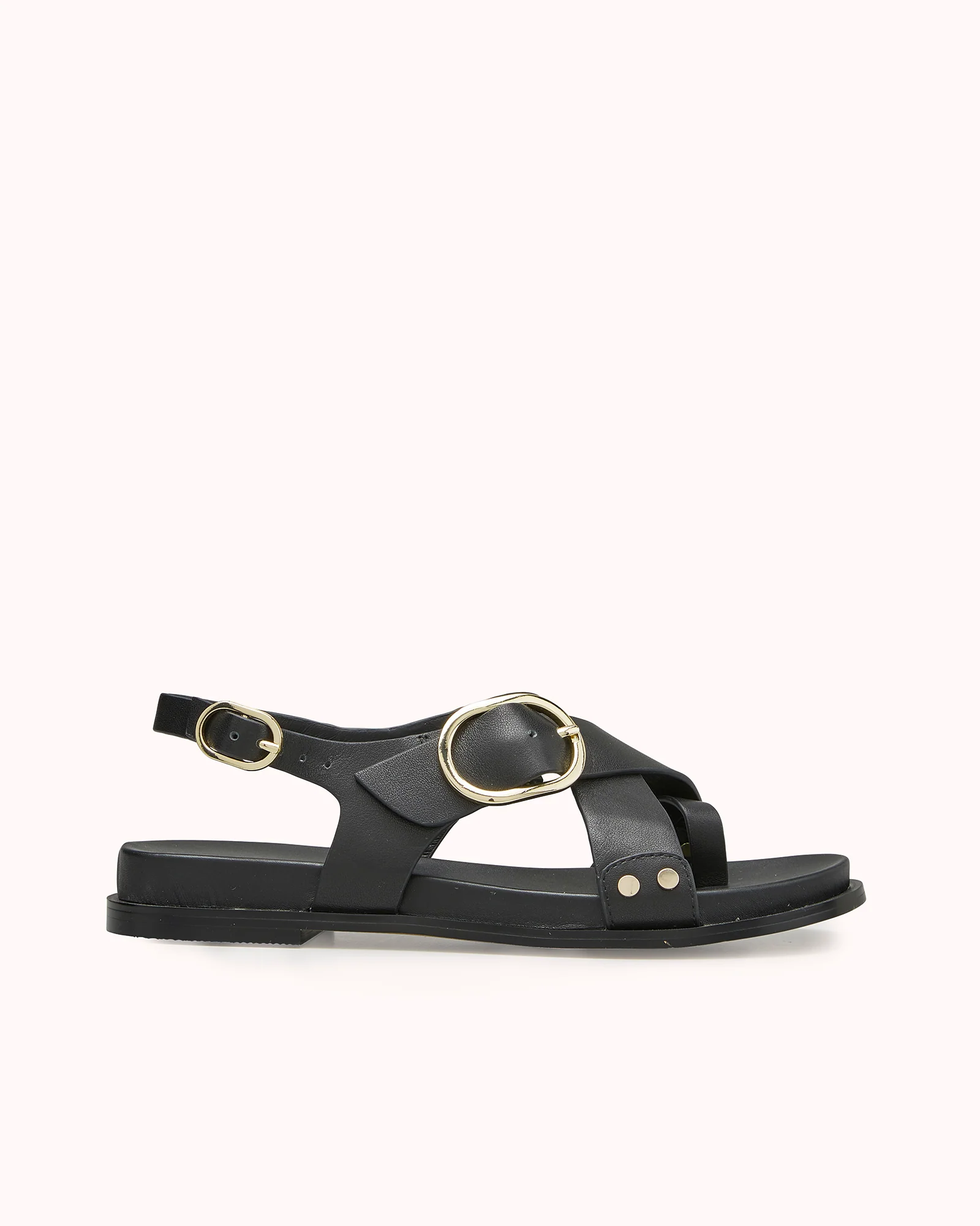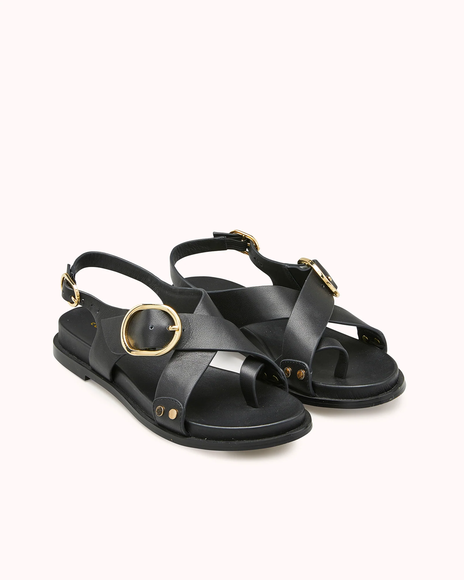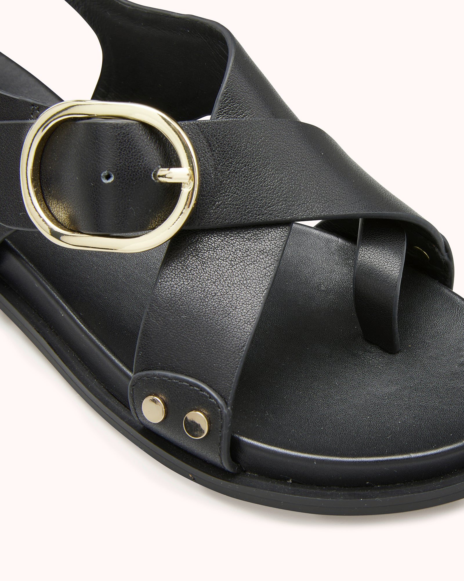 Déclinée en cuir lisse noir, notre sandale plate CARELL est la paire qui vous accompagnera au quotidien. Elle se distingue par son entre-doigt confortable et ses deux brides croisées, vous garantissant un bon maintien.