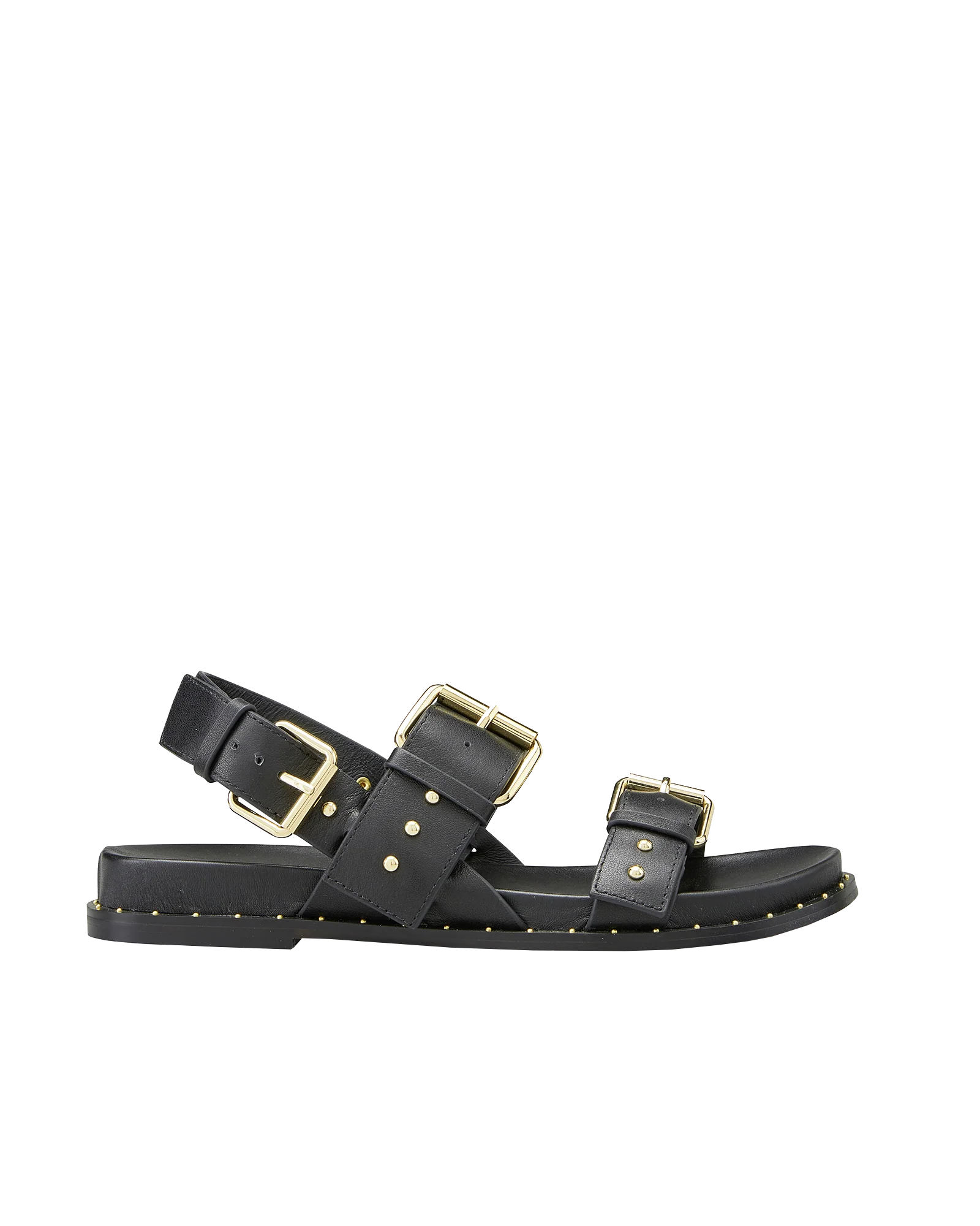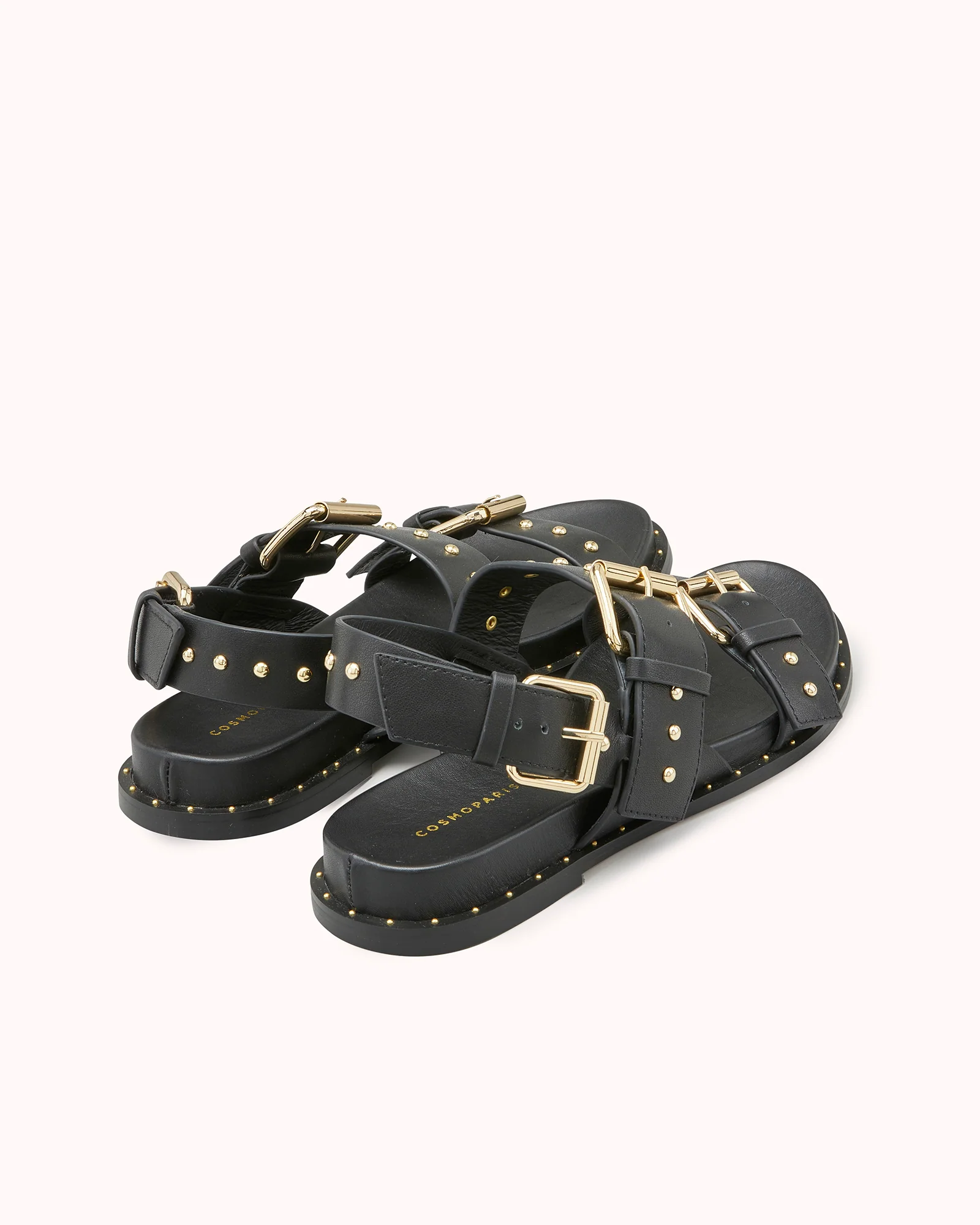 HASSI est une sandale plate au look néo-rock et très urbain grâce à sa tige multi boucle ornée de clous dorés. En cuir lisse noir, ce modèle très tendance saura s’adapter à toutes vos tenues. Ce modèle est fabriqué avec du cuir issu de tanneries certifiées Leather Working Group au niveau «gold»