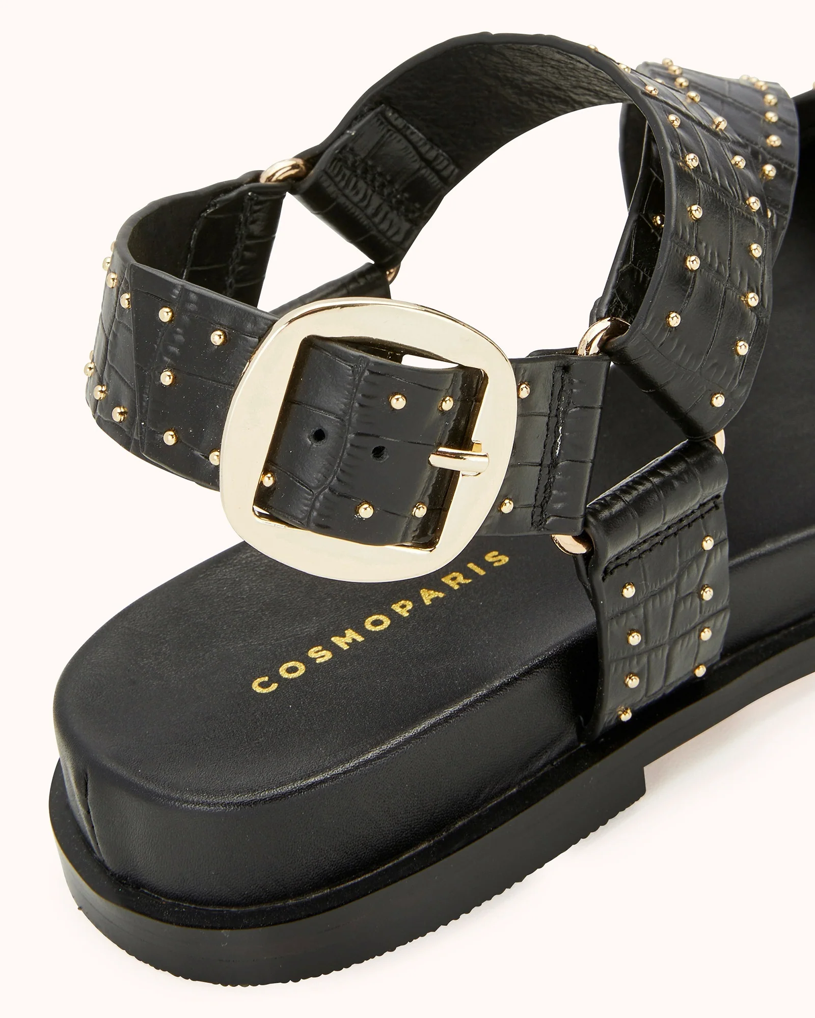 Notre modèle HINOU, sandale rock et féminine ornée de mini clous dorés, saura sublimer vos looks au quotidien. Ce modèle est fabriqué avec du cuir issu de tanneries certifiées Leather Working Group au niveau «gold».