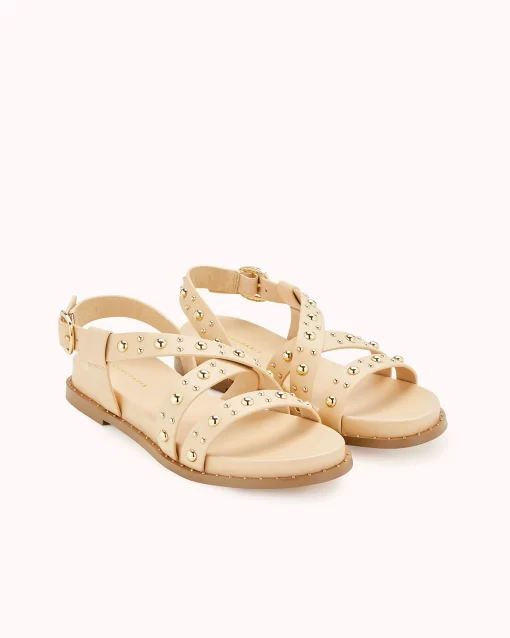 Notre modèle HOLINE, sandale rock et féminine ornée de clous dorés, avec sa tige asymétrique, saura sublimer vos looks au quotidien. Ce modèle est fabriqué avec du cuir issu de tanneries certifiées Leather Working Group au niveau «gold».