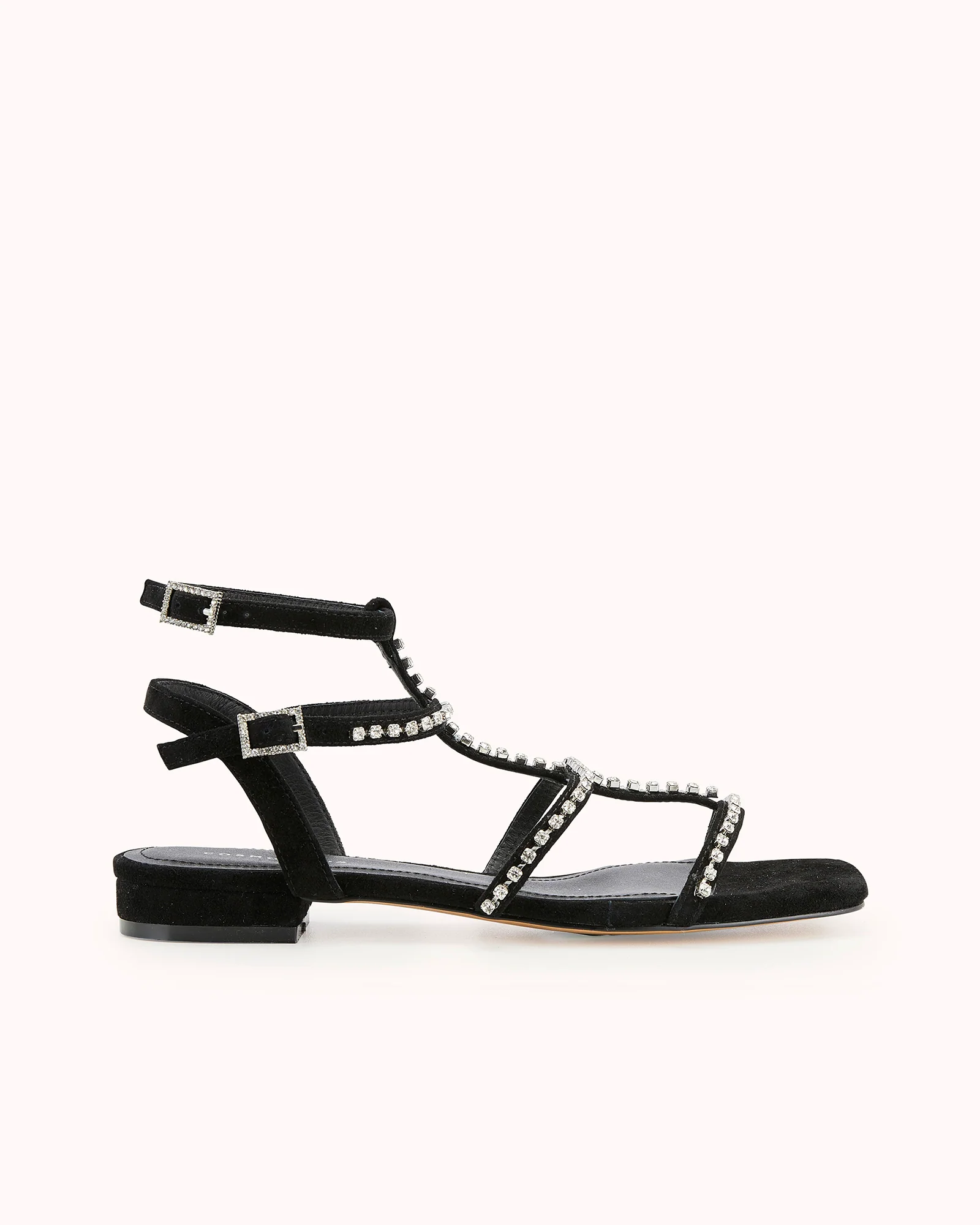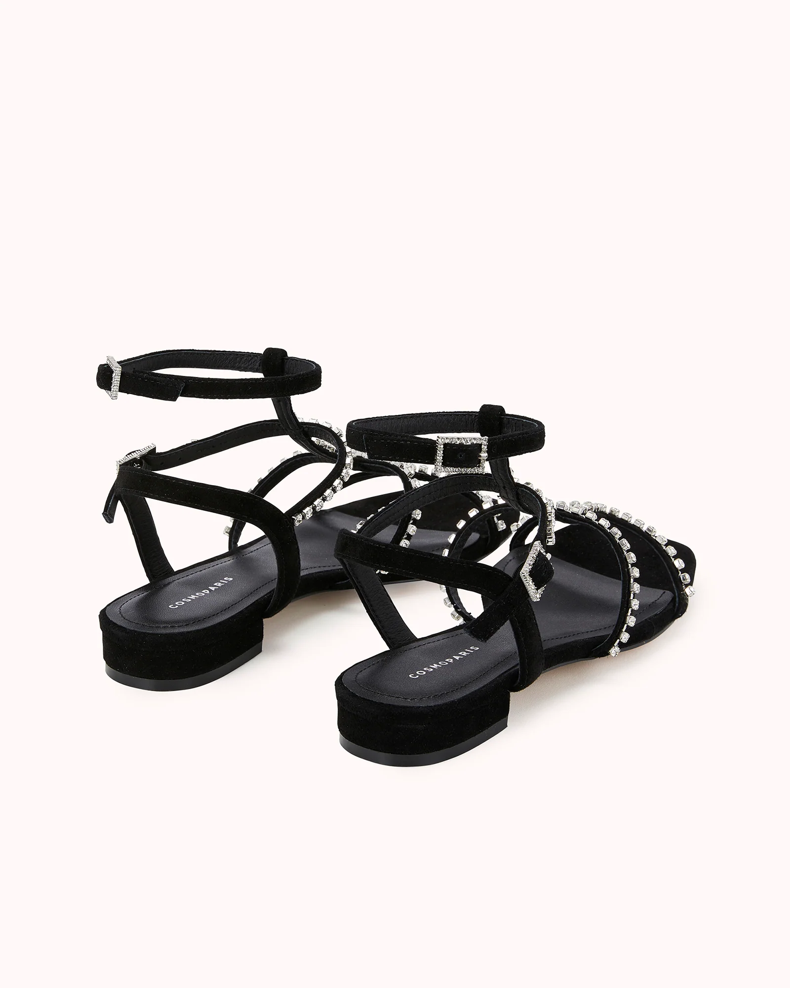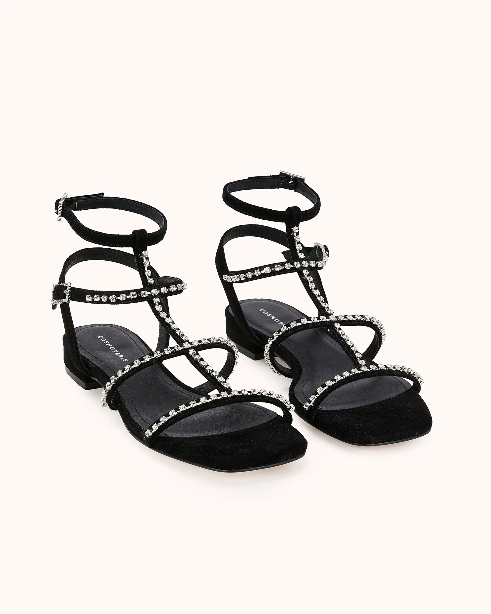 Notre modèle HORIA et une plagette en chèvre velours. Inspirée des iconiques spartiates, avec ses brides ornées de strass et sa bride cheville, elle est la paire mode et féminine qu’il vous faut. Elle vous garantira tout le confort nécessaire.